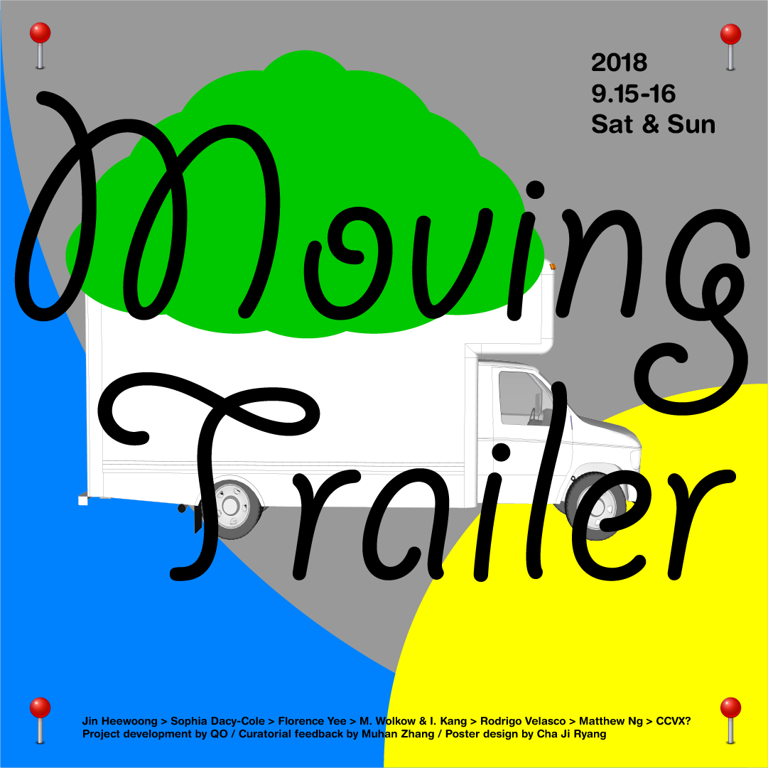 Moving Trailer (2017 – en cours) est une intervention performative dans le paysage urbain. Plutôt que de recourir aux galeries classiques, les expositions se tiennent à l’intérieur d’une remorque, évoquant le rituel du jour de déménagement. Les artistes stationnent la remorque dans des lieux choisis, faisant de chaque arrêt un espace d’installation éphémère. La remorque devient à la fois un vecteur de potentialités pour l’artiste et une plateforme mobile pour ses œuvres.