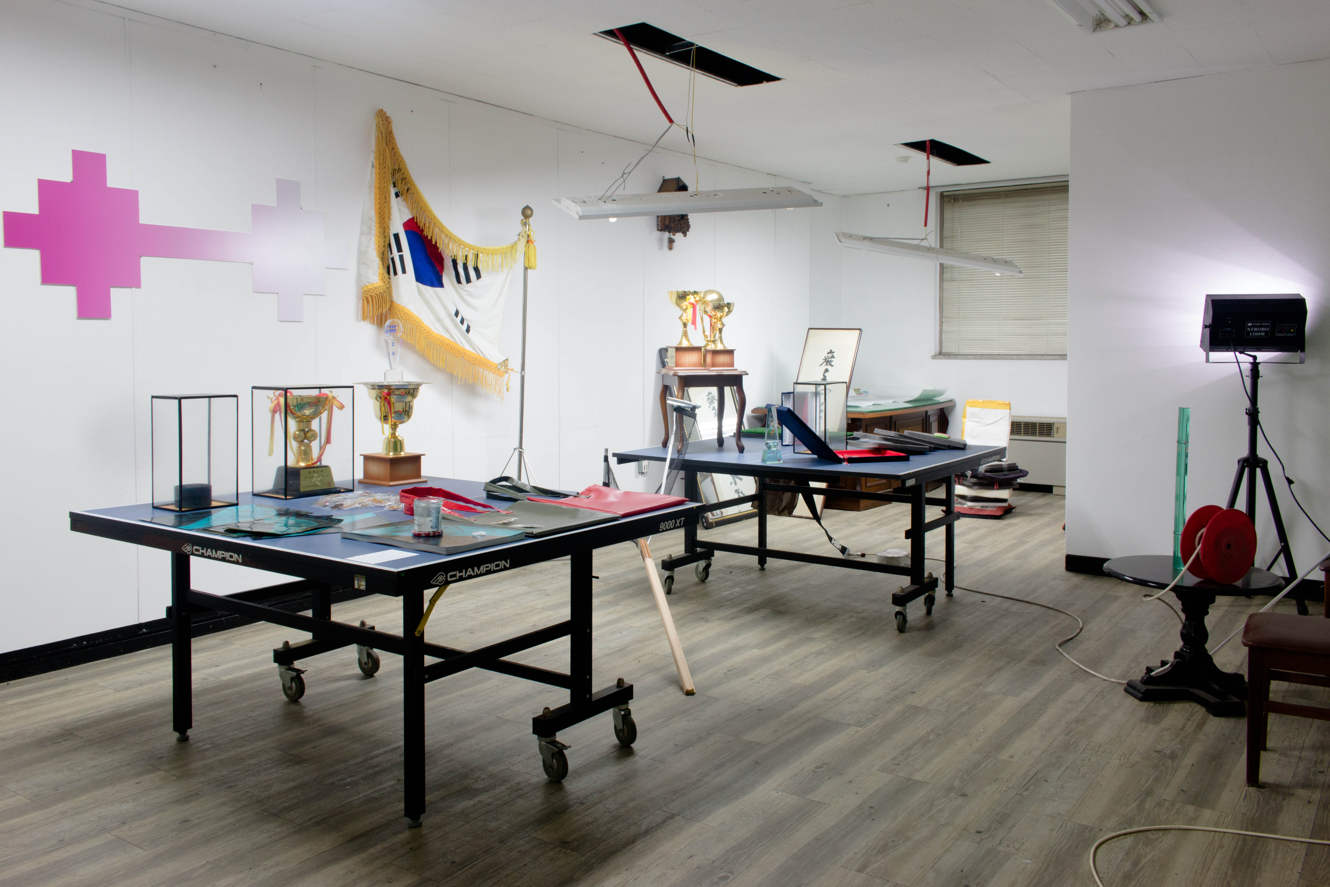 기념품 가게는 보통 관광객을 위한 물건이나 특정 주제를 바탕으로 한 상품을 판매하는 공간입니다. 이 작업은 철거를 앞둔 퇴역 군인 커뮤니티 공간을 임시 전시장으로 재구성하여, 이를 ‘기념품 가게’로 새롭게 해석합니다. 현장에 남겨진 물건들은 순간적으로 예술 작품의 일부가 되어 새로운 의미를 얻으며, 공간 곳곳에 남은 유물과 이미지, 흔적들은 잊힌 물건들이 어떻게 디자인과 예술 작품으로 재탄생할 수 있는지를 보여줍니다.